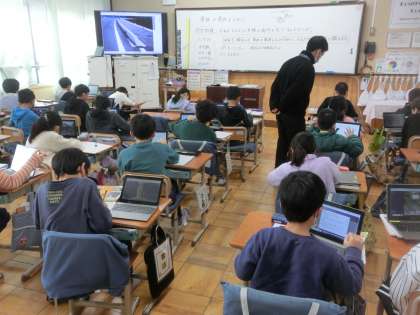 算数科では分数の学習です。3分の1メートルがなんこあれば何メートルか…?について、みんなで考えました。意見を出し合い、みんなで答えに向かうことができました。
