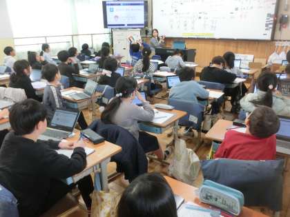 社会科では、事故や事件を防ぐために、校区にはどのようなものがあるのかに注目して、交流しました。カーブミラーや縁石など、多くのことに気づきました。