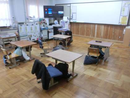 2校時は避難訓練でした。放送をしっかり聞き、気をつけて一次避難することができました。