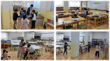 学校図書館では、本の返却・貸出をしたり、読書を楽んだりしました。