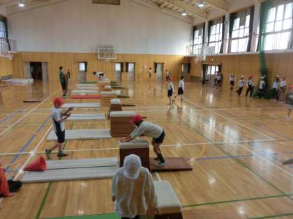体育科では跳び箱運動の学習を行っています。安全に気をつけながら、技のできばえの向上や新しい技への挑戦に取り組んでいます。