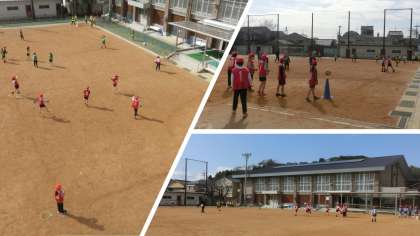 体育科ではハンドベースボールに取り組んでいます。とても前向きな声かけがたくさん聞こえてきます。