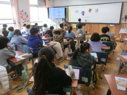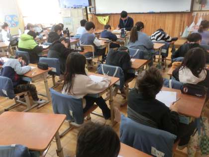 国語科では、ききとりテストに取り組みました。集中し、メモを取りながら考えています。