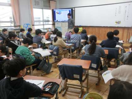 国語科「スワンレイクのほとりで」の学習では、スーパーマーケットと森での「歌」の気持ちをとらえ、友だちと意見交流しました。
