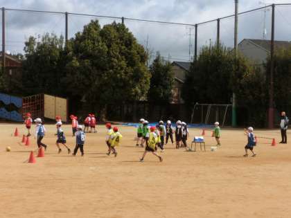 体育科では元気にボールけりあそびをしました。声をかけあって、一生懸命ボールをおいかけました。