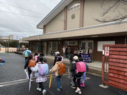 朝は本部委員会のメンバーで、あいさつ運動に取り組んでいます。よく考えて取り組んでいるからこそ、あいさつの声も大きく元気な声になっています。
