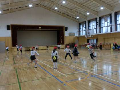 体育科では、体育館でしっぽ取りなどをして、めいっぱい体を動かしました。