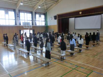 卒業式の練習が始まりました。見ると、寂しくなります。歌声を聴くと、涙が出そうになります。あと一週間。素敵な式になりそうです。