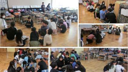 写真は、今年度最後のなかよし集会の様子です。一年間のなかよし活動を、グループで振り返りました。なかよしリーダーの6年生、本当にありがとう。お世話になりました。