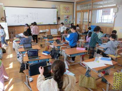 算数科では、これまでの学習のまとめに取り組みました。プリントやミライシードなど、様々な方法で練習できます。