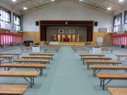 5年生ががんばってくれたあとは教職員で会場準備を行い、万端整いました。みんなの思いがこもった会場です。
