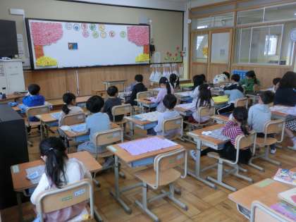 配られたプリントを片付けたり、給食の用意をしたり…。学校の一日の流れに慣れる期間です。とても前向きに取り組むことができています。
