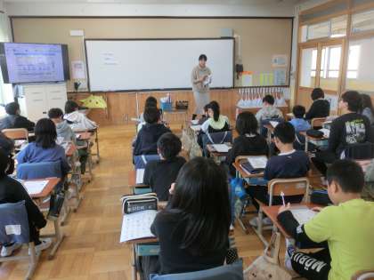 英語科では、一年間の学習の見通しを確認しました。まずスタートでは「世界の国や生活を伝え合おう」というテーマです。