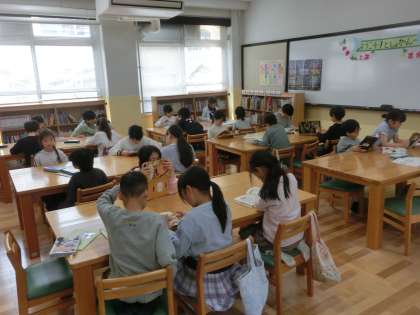 図書館では、静かに本に親しみました。3年生の子どもたち、図書館の使い方はしっかりと身についています。