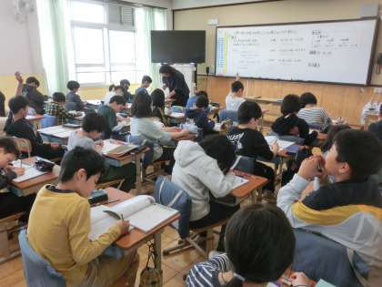算数科では小数の学習です。小数を10倍、100倍、1000倍すると位だてがどうなって、小数点の場所はどうなって…と調べました。