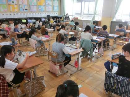国語科では、1年生のときに習った言葉の問題に取り組みました。よく覚えていますね!