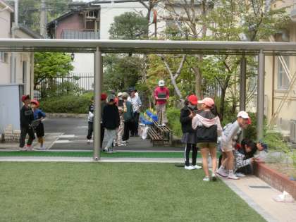 理科では1年間の観察のねらいをもって、校内を見て回りました。どこに注目して季節による移り変わりや変化を確かめるか、考えました。