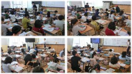算数科では、くりあがりのあるたし算について考え、問題に向き合いました。これまでの学習を生かして、しっかり考えています。