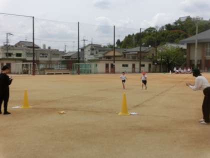 また体育科では両クラス一緒に、50m走のタイムを計りました。