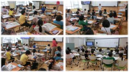 国語科では明日の発表に備えた準備を、算数科ではひき算の学習を、音楽科では歌詞の情景を思い浮かべながら歌唱を。どの時間も、コミュニケーションをとりながら学習を深めています。