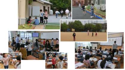 外国語活動の時間には、名刺を交換しながらあいさつを交わす学習に取り組みました。みんな笑顔で関わっています。