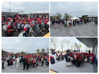 会場に入場しました。曇りですが、過ごしやすい体感です。しっかり注意事項を確認し、まずは「フューチャーライフゾーン」をグループごとに見学です。