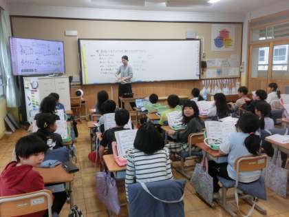 音楽科では「ドレミでうたおう」の曲を、音の高さに気をつけながら、歌ったり演奏したりしました。