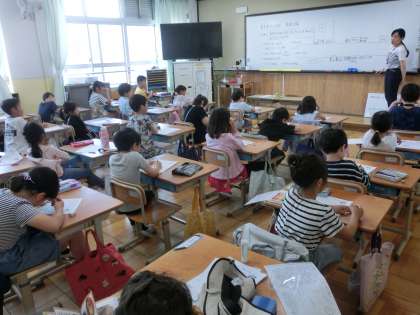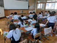 生活科「まちをたんけん 大はっけん」の学習で、今日は鞍馬口通をたんけんしました。色々と見つけたことを交流したり、忘れないようにカードにまとめたりしました。自分たちが住む町について、どんどん詳しくなっていますよ。