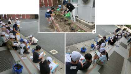生活科では、トマトの苗を植えました。植えるだけでなく、苗や植えた時の様子も記録しました。これからの生長が楽しみです。