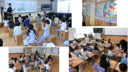 図画工作科「ちょきちょきかざり」は2回目。前回とは、紙の折り方に工夫を加えて、また違ったかざり作りを楽しみました。