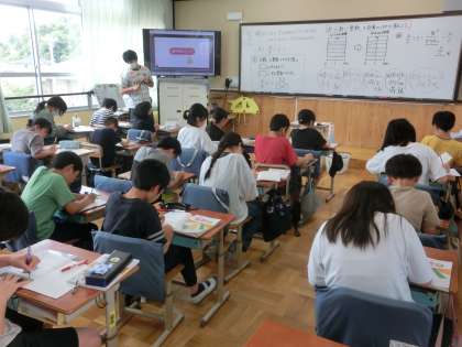 算数科では「分数÷整数」の計算の仕方を考えました。これまでの積み重ねを生かして考え、まとめで言語化することも有意義な学習です。