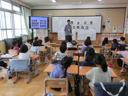生活科「なかよしいっぱい」では、がっこうたんけんで校内の様子を知るとともに、教職員のことも知っていきます。さて、どれくらいの人が関わっているのでしょう?