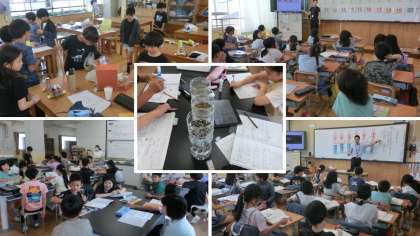 4年生は図画工作科で作った車を走らせました。個性あふれる素敵な車がたくさんできましたよ。作業の片付けもばっちりです。また理科では、モデルを観察しながら「土の種類と水のしみこみ方の関係」について考えました。いろんな意見が交わされています。
