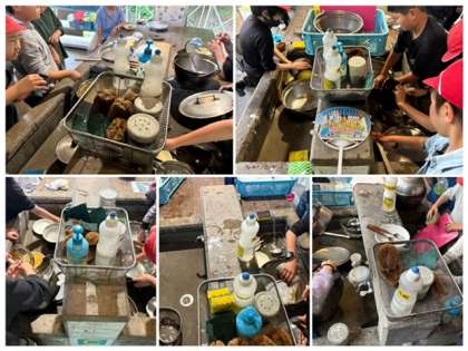 美味しくいただいたあとは、後片付け。みんな協力し、がんばっています。役割分担し、声をかけあい、しっかり協働することができています!