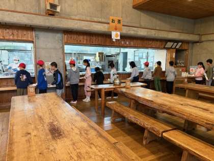 入浴を終え、夕食です。山の家での最後の夕食。