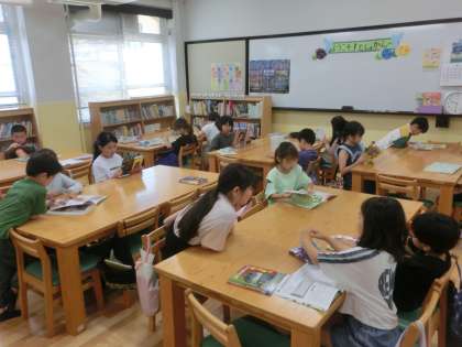 図書館では読書をしました。それぞれに好きな本を選び、本の世界を楽しみました。