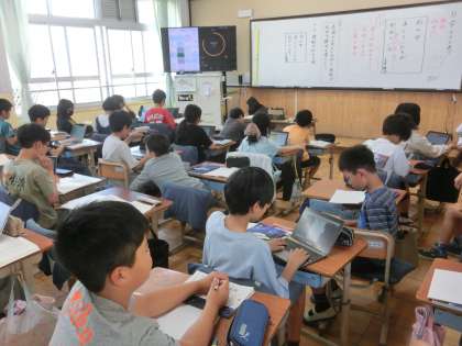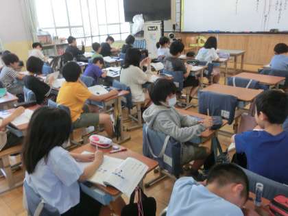 国語科「日常を十七音で」の学習。表現を工夫して、俳句を作ります。五・七・五のリズムを楽しみながら作ります。