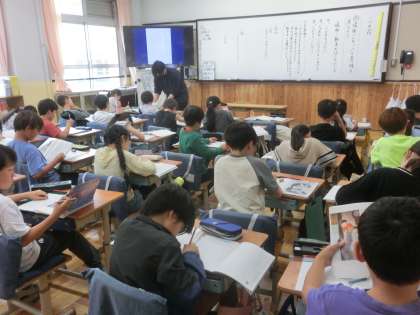 国語科「一つの花」の学習では、場面ごとに出てくる「一つ」の意味について考え、意見交流を通して深めていきました。