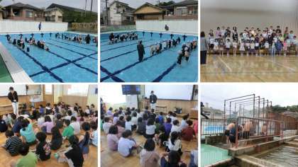 1年生は初めてのプールでの水あそび。まずはすすめかたを学びます。2年生は昨年を思い出しながら取り組むことができました。