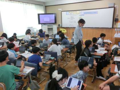 外国語科では、世界の学校や子供たちの生活などについて考えよう、のめあてで学習しました。言語を通して文化にも触れることで、自分自身の世界が広がっていきます。