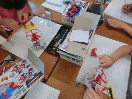 理科では、「電池の数やつなぎ方によってモーターの回る速さが違うのはどうして?」について予想し、調べてみました。