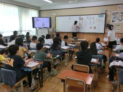 道徳では「ウイルスとの戦い」というコロナ禍初期のことを取り上げたお話を通して、働くことの意義について考えました。真剣に考え、様々な視点から意見を出し合って深めていく姿が素敵でした。よい学びになりました。