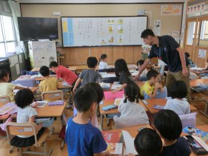 国語科で、「おむすびころりん」のお話を楽しんだり、「は」「を」「へ」の使い方を学習したりしました。