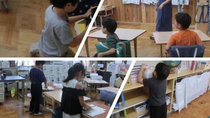 自立活動として個別に準備をしたり片付けたり、またそれぞれの課題に取り組んだりする時間も大切です。徐々にするべきことが身につき、一日の流れを見通すことにもつながります。お友だちや上級生の様子を見ることもよい学びとなります。