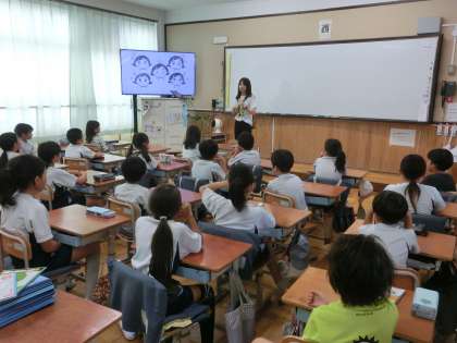 また、養護教諭による保健指導では、目について学習しました。目をリフレッシュする「目のたいそう」もしてみました。