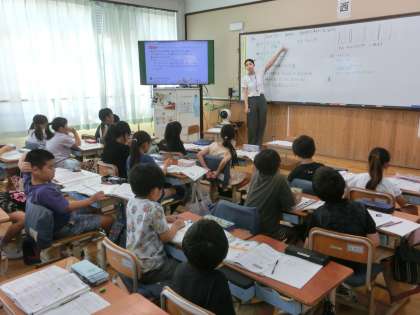 算数科では「あまりのあるわり算」の学習に取り組んでいます。問題文をよく読み、丁寧に思考して計算をしました。