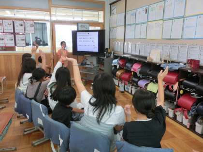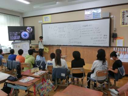国語科「私と本」の学習では、自分のお気に入りの本を紹介しあいました。パワーポイントを用いて、クイズ形式を取り入れるなど、興味を引く発表となりました。