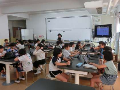 理科では「とじこめた空気をおしたとき、くうきはどうなっているのだろうか」というめあてで学習しました。ロイロノートを使って、予想や実験の結果、考察などをまとめていきます。