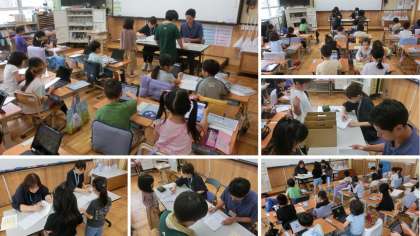 今日の午前には1年生の検定が行われました。はじめてのあしあと検定。1年生のみんなもドキドキしながらノートを見てもらいました。しっかりと学習の足跡が見られましたよ♪