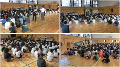 今日の入場時は、本当にたくさんの児童が、目を見て声を出してあいさつしてくれたこと、とても嬉しかったです。そして月末の運動会に向けてめあてをもって取り組んでいくこと、健康・安全に気をつけて、互いを思いやり合って過ごしていくことを確認しました。